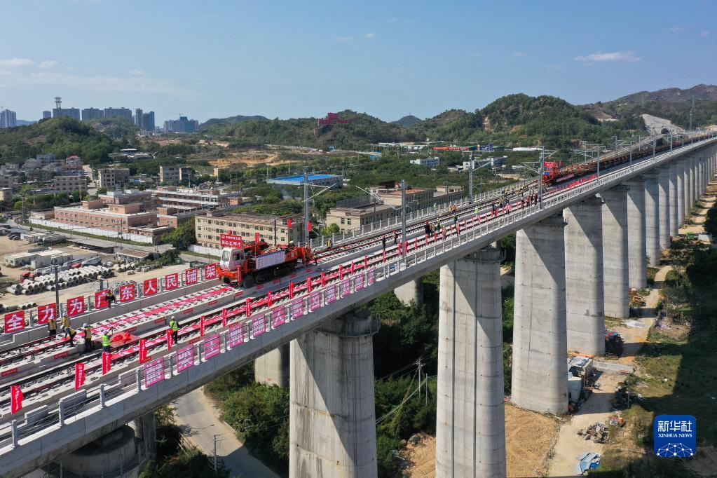 廣汕鐵路正線(xiàn)鋪軌貫通