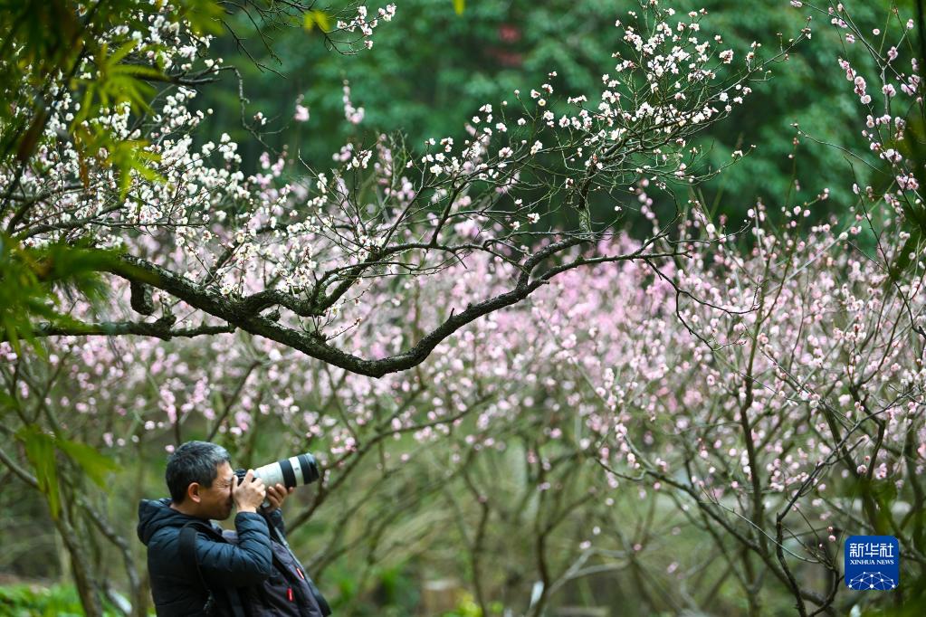 2月22日,攝影愛(ài)好者在江蘇省昆山市亭林園拍攝梅花。