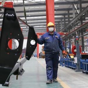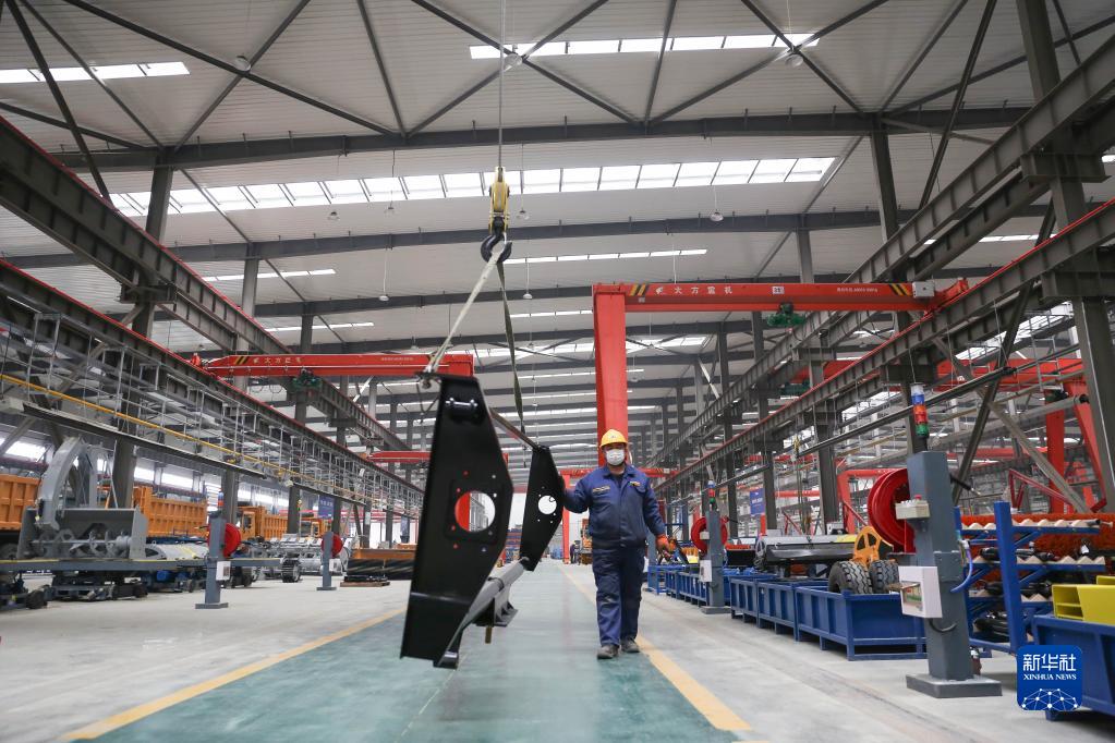 2月22日,工人在位于阜新市的徐工(遼寧)機械有限公司生產(chǎn)車(chē)間內工作。