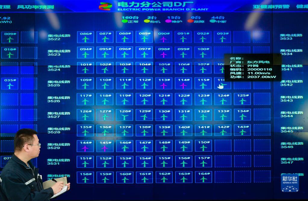 2月23日,工作人員在位于霍林郭勒市的霍林河循環(huán)經(jīng)濟示范工程風(fēng)電光伏基地主控室里工作。