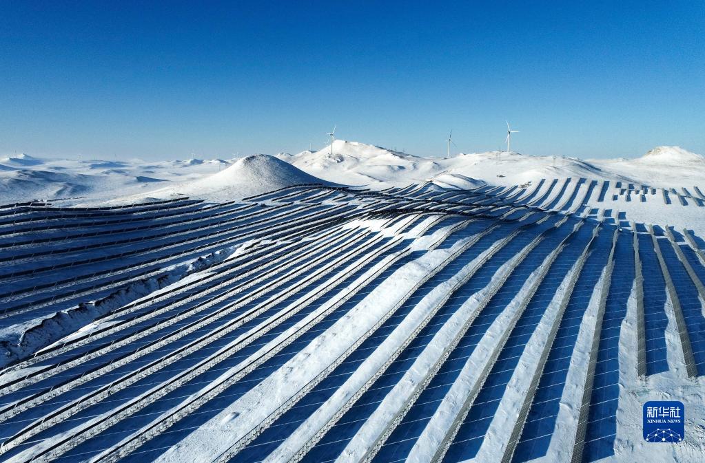 2月23日在霍林郭勒市拍攝的霍林河循環(huán)經(jīng)濟示范工程風(fēng)電光伏基地(無(wú)人機照片)。