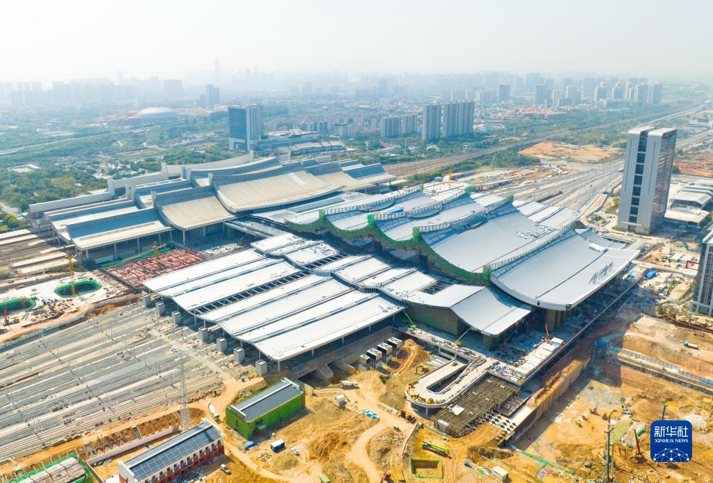 2月23日拍攝的新建福廈鐵路廈門(mén)北站外景(無(wú)人機照片)