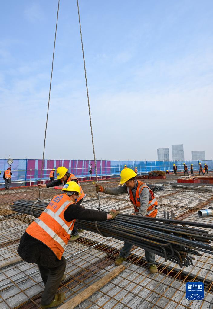 2月24日,在位于成都東部新區的四川大學(xué)華西東部醫院項目建設現場(chǎng),工人在進(jìn)行封頂施工作業(yè)。