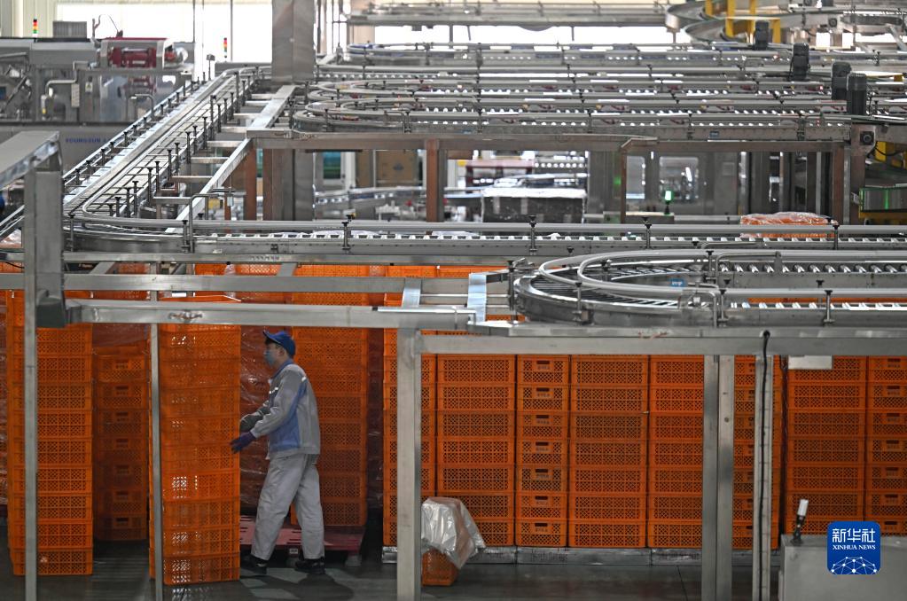 在天津海河乳品有限公司廠(chǎng)房?jì)?,工作人員在運輸貨物(2月20日攝)。