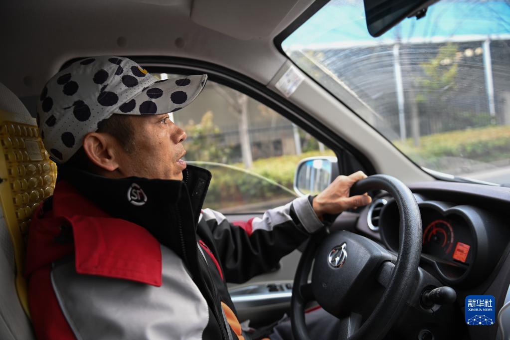 羅書(shū)堅在浙江金華駕駛貨車(chē)運送快遞件(2月23日攝)。