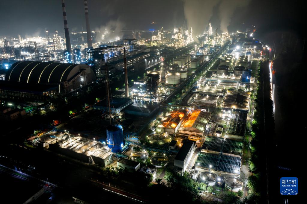 2月21日在重慶涪陵區白濤新材料科技城拍攝的企業(yè)夜間生產(chǎn)景象(無(wú)人機照片)。