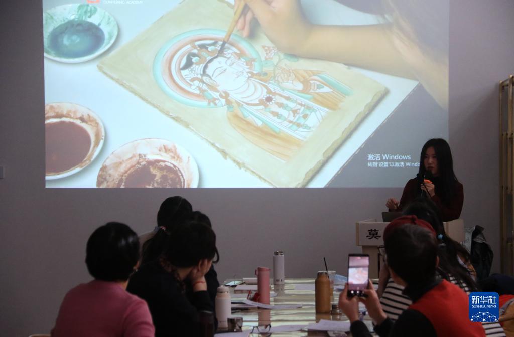 近年來(lái),甘肅省敦煌研究院依托敦煌石窟資源和學(xué)術(shù)資源,打造“莫高學(xué)堂”研學(xué)品牌,結合敦煌壁畫(huà)的結構、巖彩、圖案等內容和元素,研發(fā)了“莫高夢(mèng)·泥胚典藏”、“遇見(jiàn)敦煌·色彩”等10余個(gè)獨具特色的研學(xué)課程,傳承弘揚敦煌文化,推動(dòng)文旅產(chǎn)業(yè)融合發(fā)展,讓游客在旅游參觀(guān)同時(shí)進(jìn)一步體驗敦煌文化。莫高學(xué)堂自2019年創(chuàng )辦以來(lái),累計有5萬(wàn)余人次參加敦煌文化研學(xué)體驗。新華社發(fā)(張曉亮 攝)