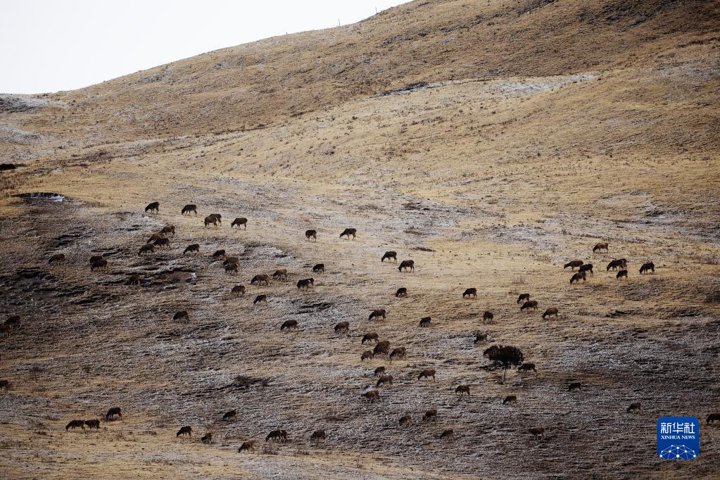 這是2月22日在昂賽大峽谷拍攝的白唇鹿。