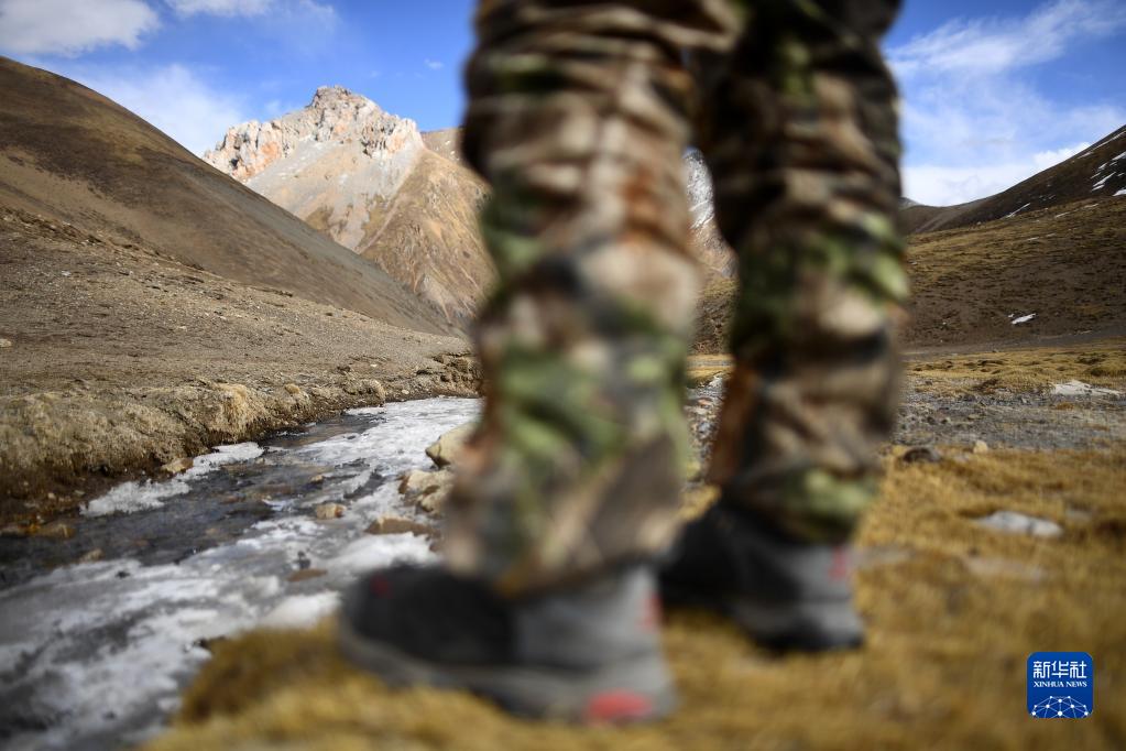 2月22日,更求曲朋在昂賽大峽谷內巡護途中駐足。