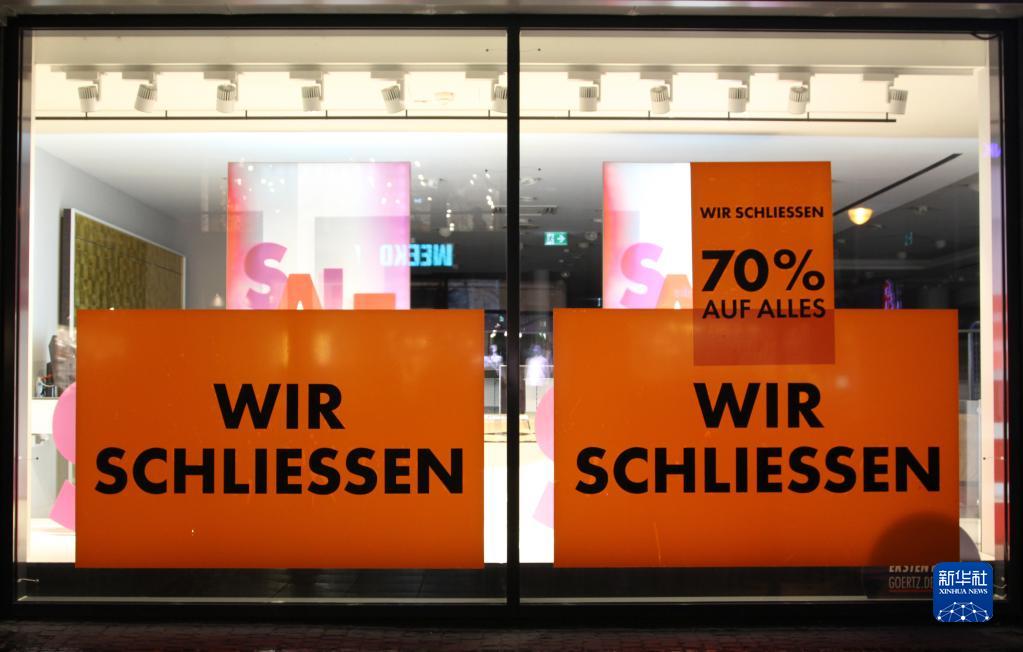 這是2月24日在德國法蘭克福拍攝的一家關(guān)閉的店鋪。