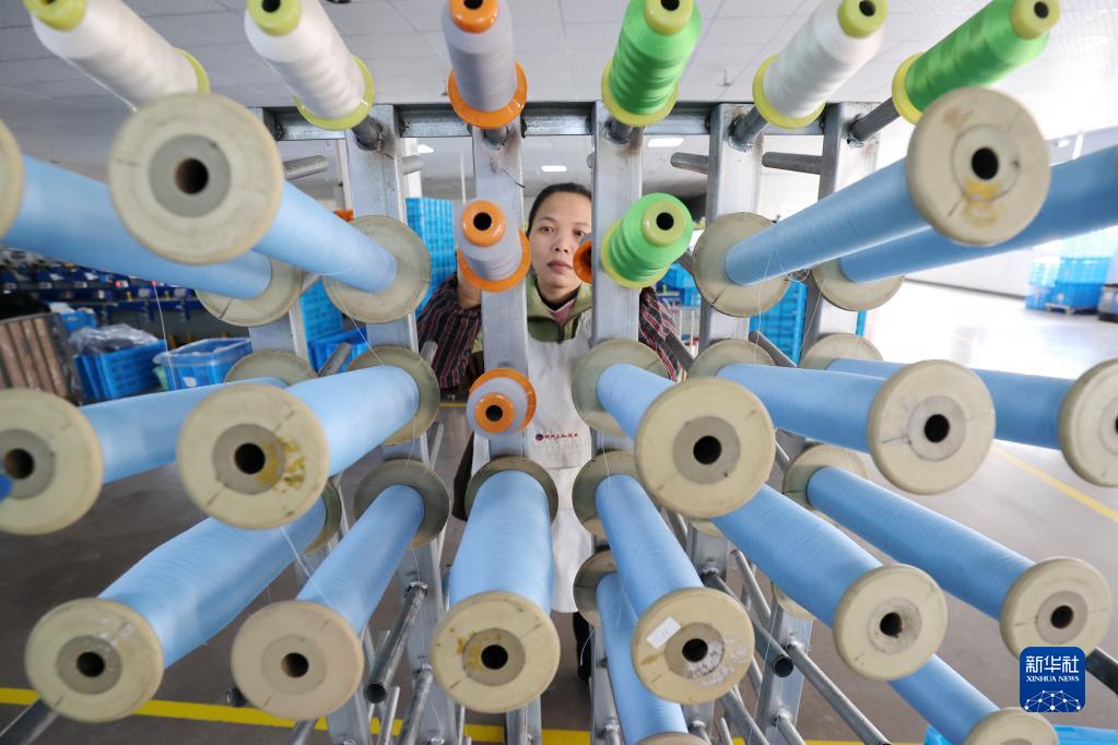 2月25日,工人在浙江省湖州市德清縣新安鎮一家紡織企業(yè)生產(chǎn)車(chē)間內忙碌。
