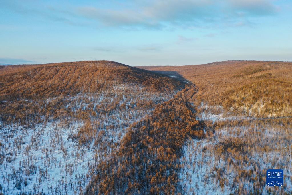 2月23日拍攝的內蒙古森工集團滿(mǎn)歸森工公司烏龍岱林場(chǎng)景色(無(wú)人機照片)。