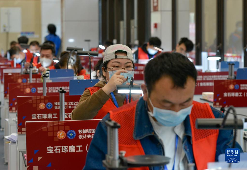 2月25日,選手在寶石琢磨工項目比賽中。