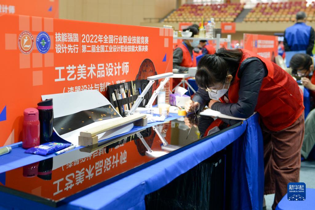 2月25日,選手在工藝美術(shù)品設計師項目比賽中。