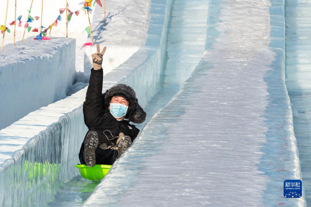 2月25日,游客在哈爾濱太陽(yáng)島雪博會(huì )園區游玩。