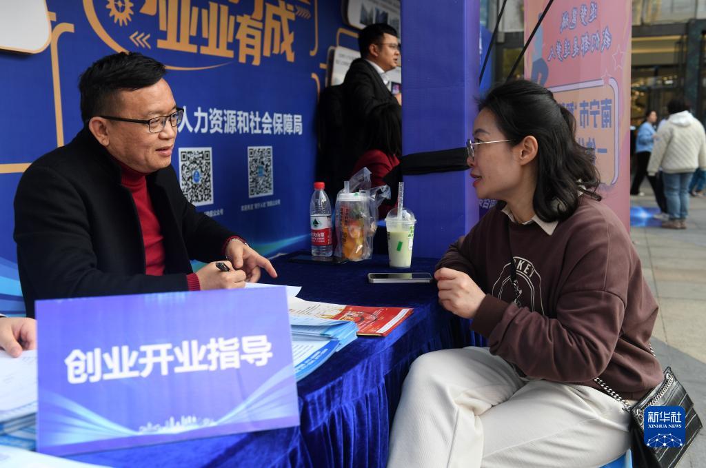 2月25日,在廣西南寧市青秀萬(wàn)達廣場(chǎng),市民在創(chuàng )業(yè)展現場(chǎng)咨詢(xún)創(chuàng )業(yè)信息。