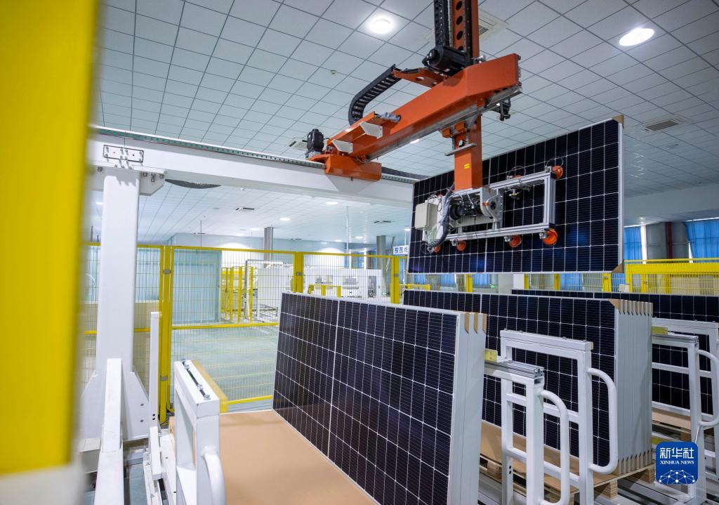 在位于寧夏同心工業(yè)園區清潔能源產(chǎn)業(yè)園的英利新能源(寧夏)有限公司組件制造部生產(chǎn)車(chē)間內,自動(dòng)化設備對光伏產(chǎn)品進(jìn)行分檔(2月23日攝)。