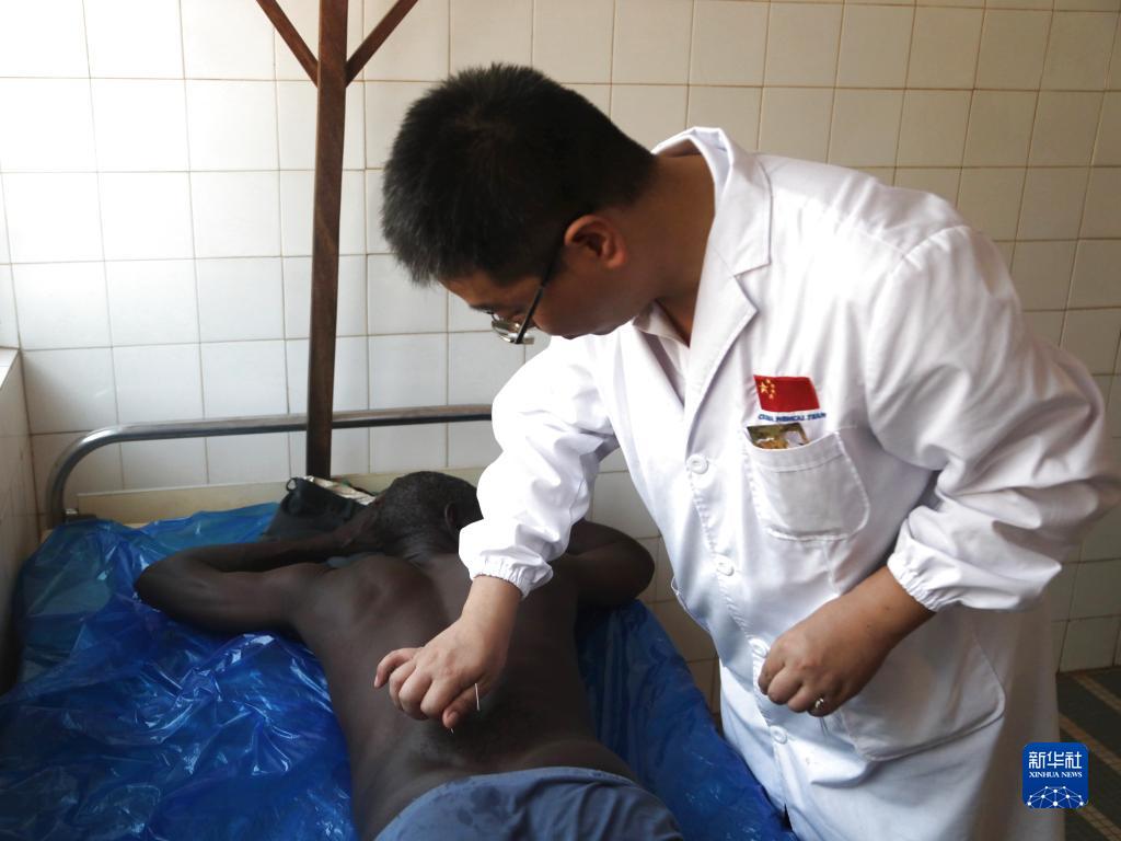 2月25日,在多哥卡拉市皮亞區醫療中心,中國第25批援多哥醫療隊醫生為當地病人診療。