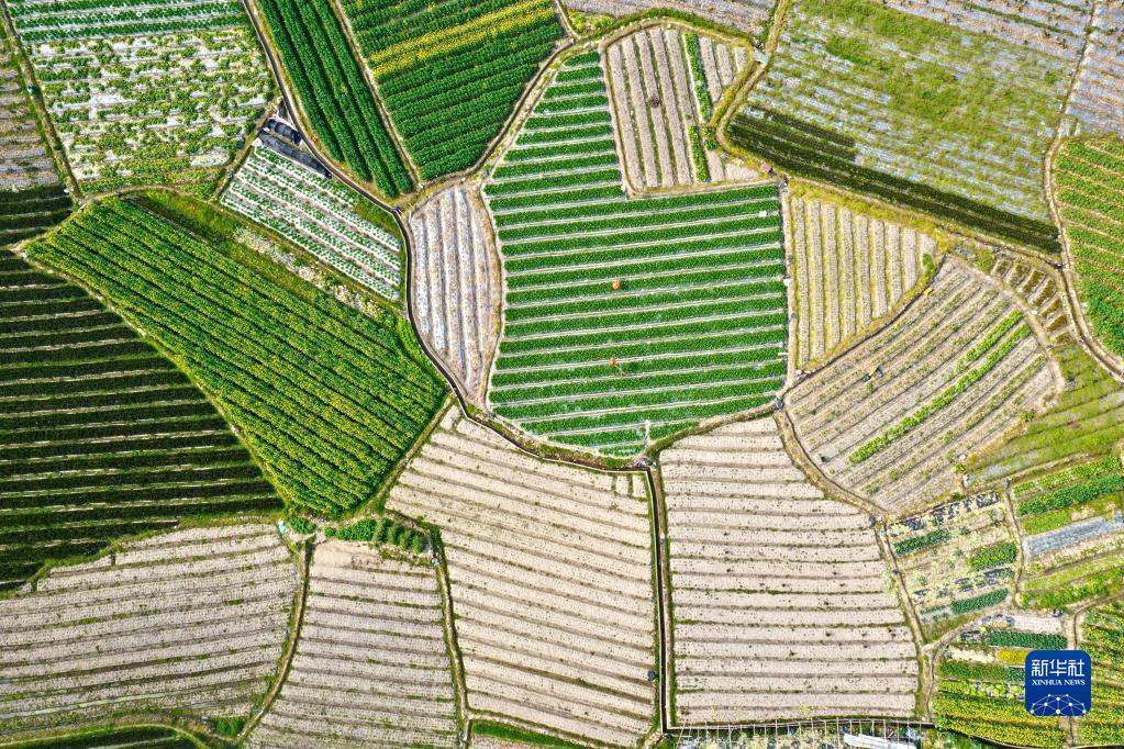 春耕時(shí)節,在福建省福州市鄉村山嶺間,一塊塊形狀各異、五彩斑斕的田地猶如大地上的拼圖,呈現別樣的春耕畫(huà)卷。