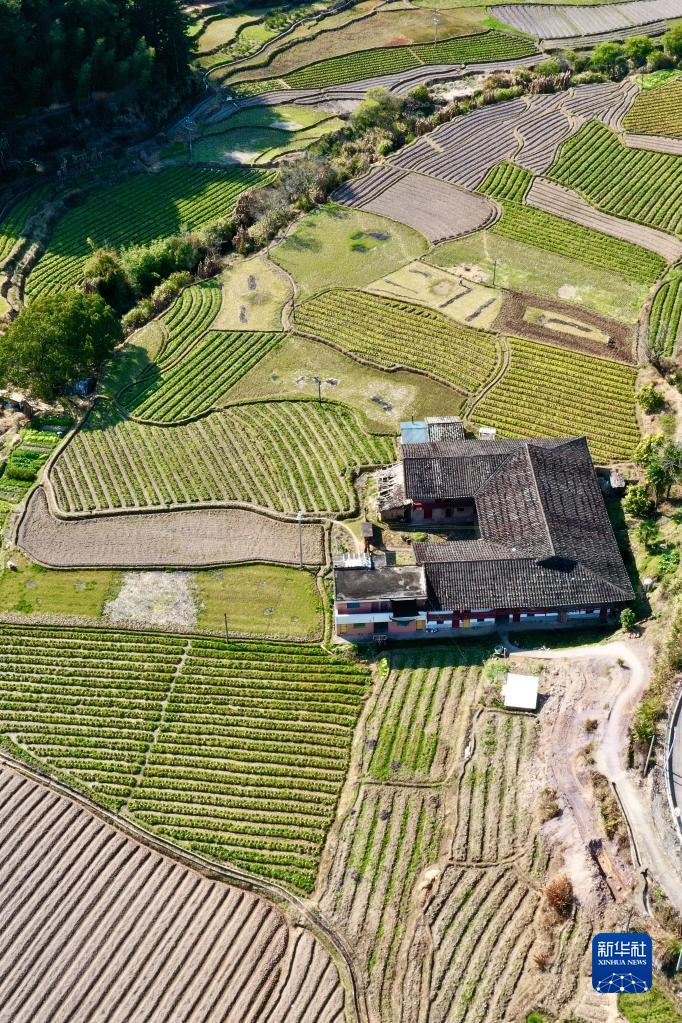 2月23日拍攝的福州市永泰縣白云鄉白云村田野景觀(guān)(無(wú)人機照片)。