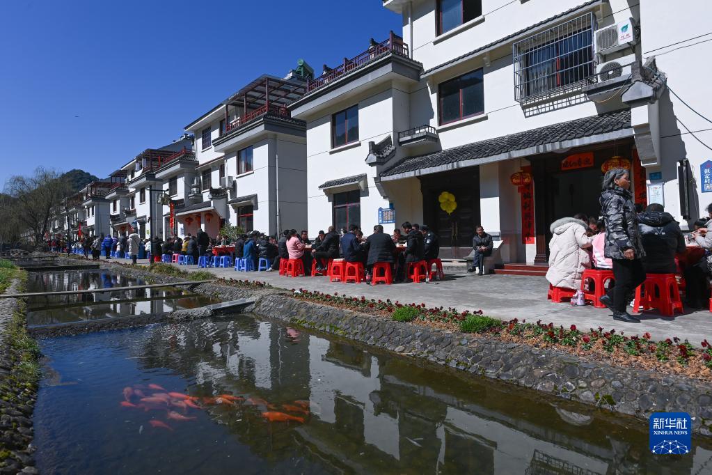 當日,上千名游客來(lái)到浙江省建德市蓮花鎮戴家新村民宿一條街,參加鄉村特色百家宴,感受新農村“舌尖上的幸?!?。本次鄉村百家宴也標志著(zhù)2023建德市蓮花鎮鄉村民俗旅游文化節正式開(kāi)啟。