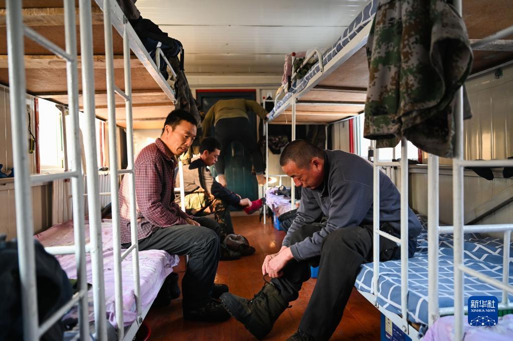 2月23日早晨,烏龍岱林場(chǎng)402工隊職工在駐點(diǎn)的移動(dòng)板房?jì)却┥弦挛餃蕚渖仙阶鳂I(yè)。