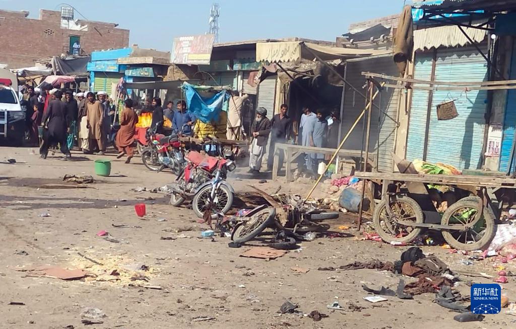 2月26日,人們在巴基斯坦西南部俾路支省的爆炸事件現場(chǎng)查看。