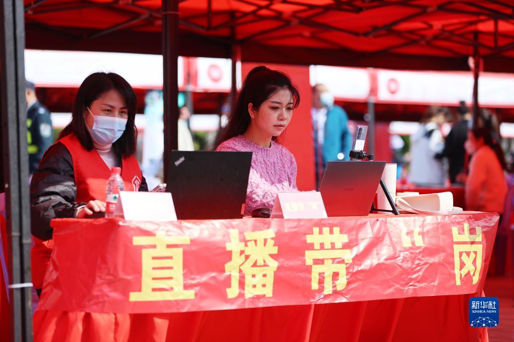 2月26日,工作人員現場(chǎng)直播介紹企業(yè)崗位信息。