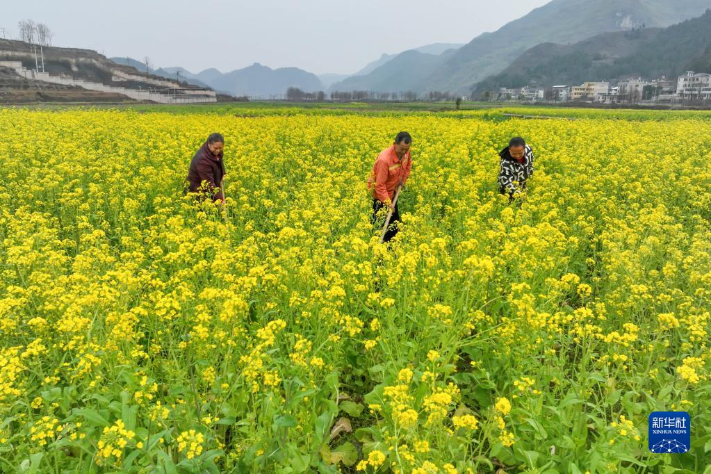 2月27日,村民在貴州省黔東南苗族侗族自治州岑鞏縣水尾鎮駕鰲村田間勞作(無(wú)人機照片)。