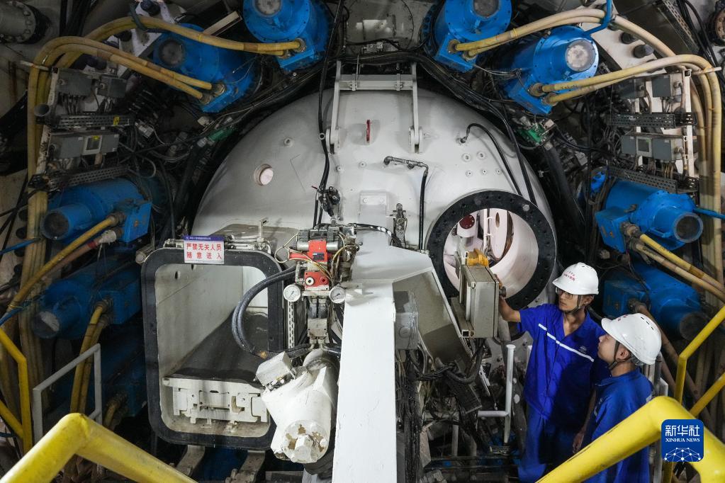 2月28日,技術(shù)人員在廣湛鐵路湛江灣海底隧道盾構區間檢查盾構機設備狀況。