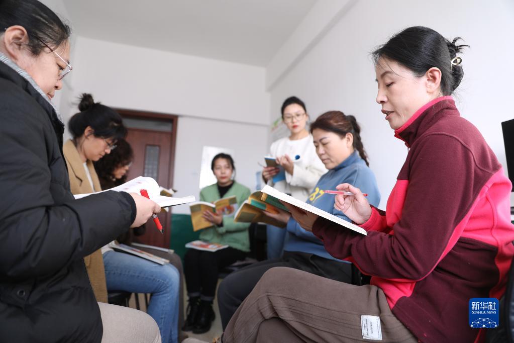 2月28日,遼寧省臺安縣逸夫小學(xué)教師李華麗(右一)和同事們進(jìn)行開(kāi)學(xué)前教研活動(dòng)。