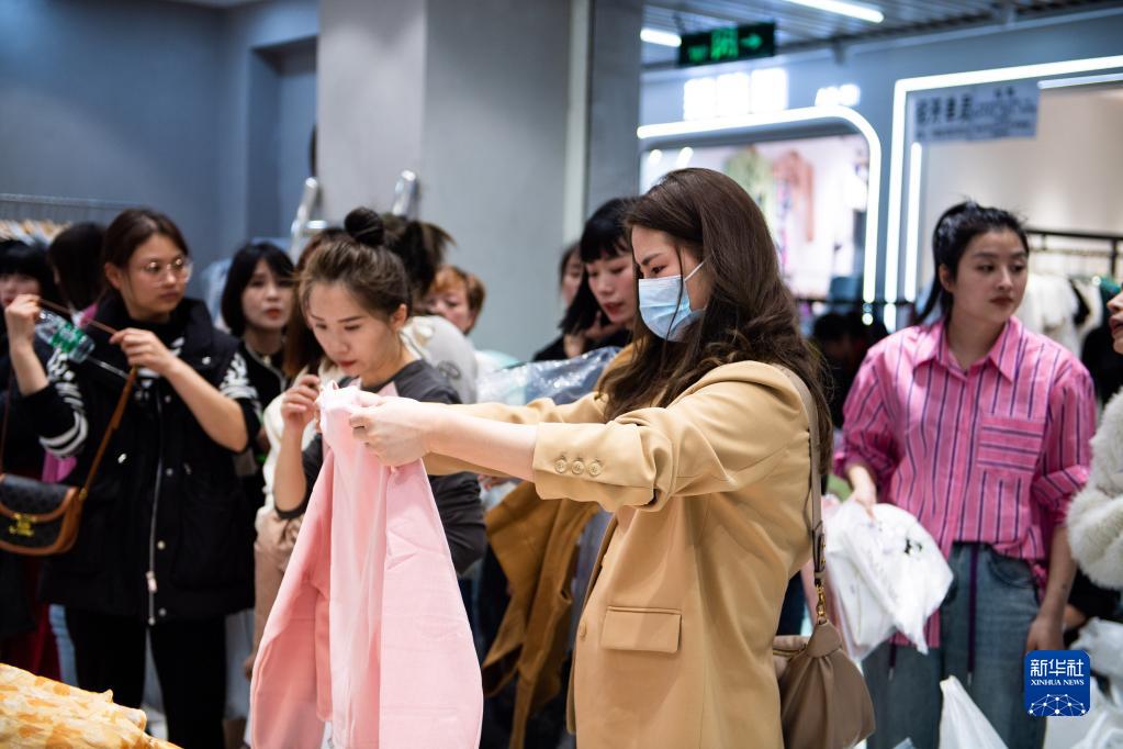 2月28日,批發(fā)商在湖南省株洲市蘆淞區華麗服裝批發(fā)大市場(chǎng)選購服飾。