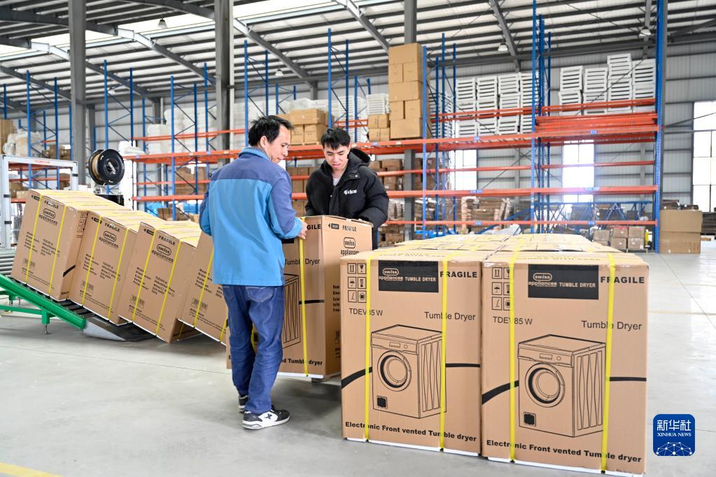 2月28日,工人在柳江區一家電器企業(yè)的裝運準備出口的滾筒式干衣機。