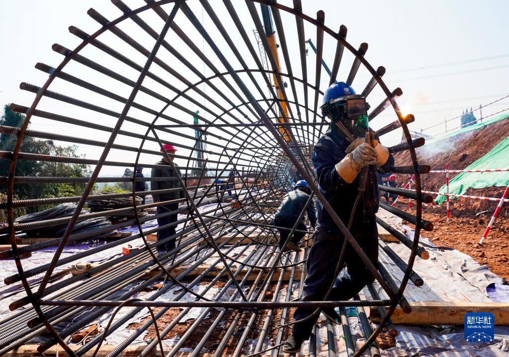 2月26日,重慶市潼南區小渡鎮川渝1000千伏特高壓交流工程(重慶段)施工現場(chǎng),工人在進(jìn)行焊接作業(yè)。