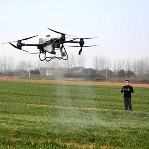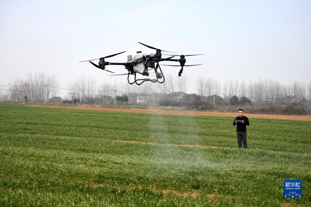 2月28日,王昌在來(lái)安縣水口鎮擁巷村操作植保無(wú)人機噴灑除草劑。