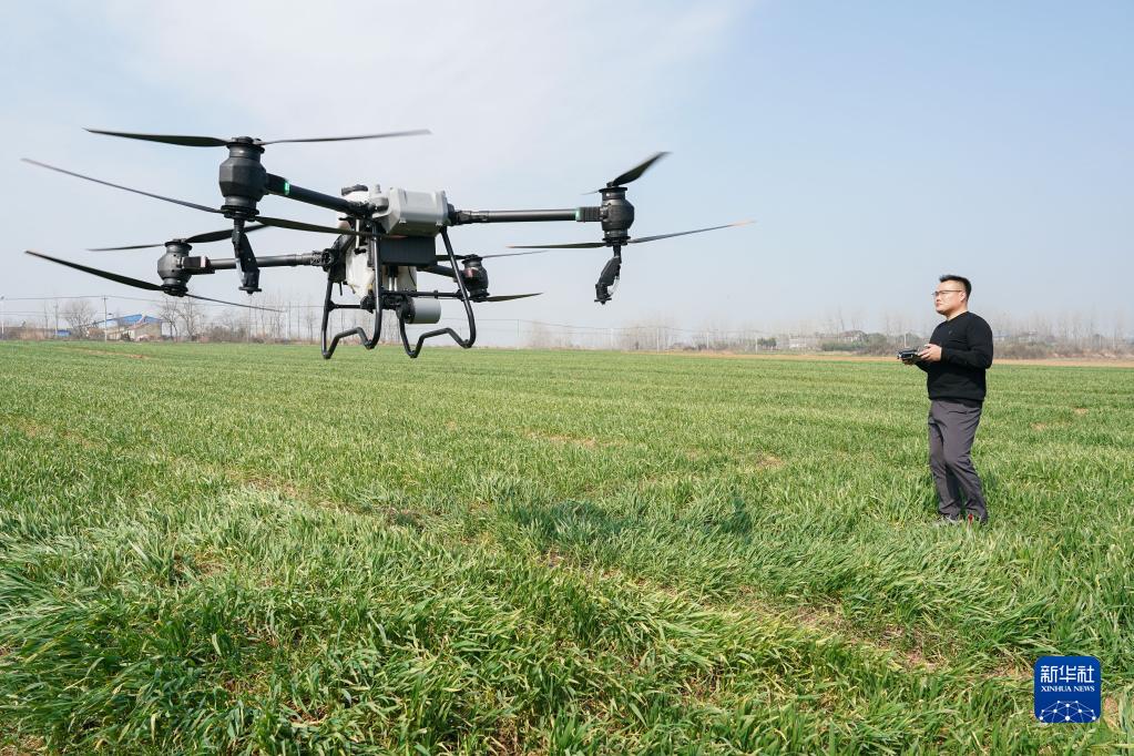 2月28日,王昌在來(lái)安縣水口鎮擁巷村操作植保無(wú)人機噴灑除草劑。