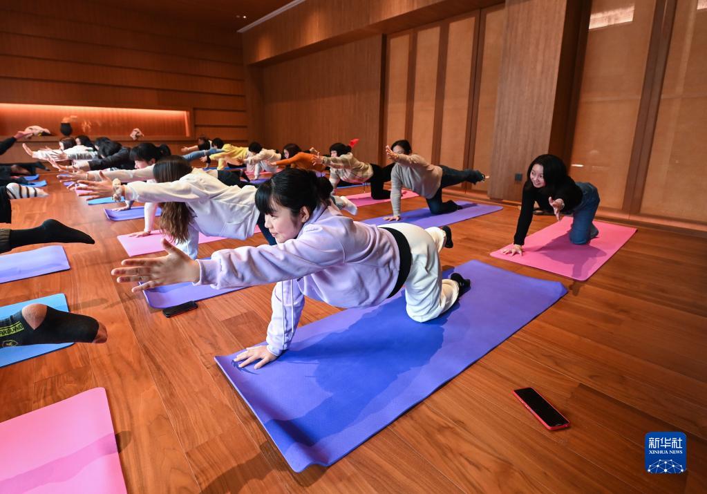 3月1日在婦女節主題活動(dòng)現場(chǎng)拍攝的瑜伽體驗課活動(dòng)。