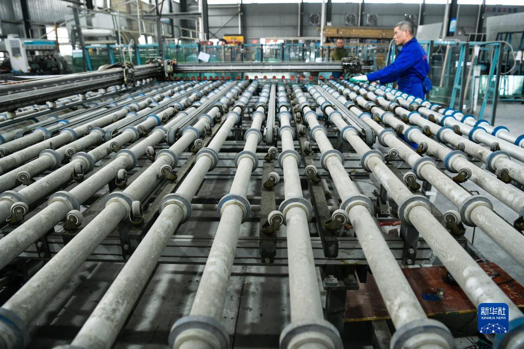 工人在貴州省天柱工業(yè)園區一家玻璃生產(chǎn)加工企業(yè)加工玻璃(2月28日攝)。