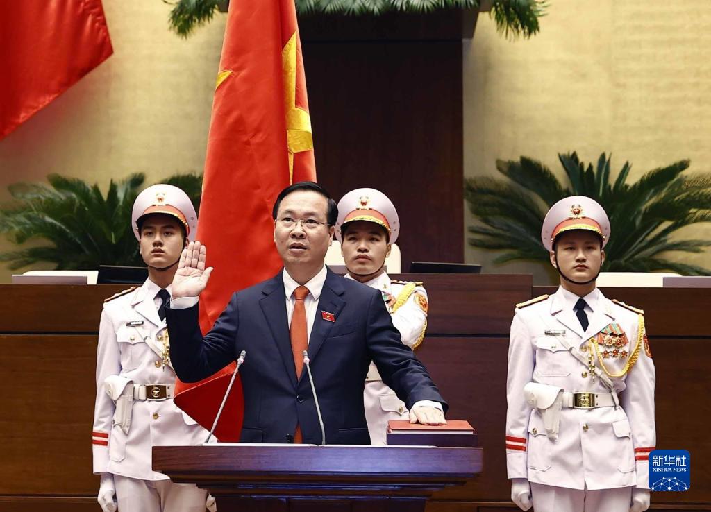 3月2日,在越南首都河內,新當選的越南國家主席武文賞宣誓就職。
