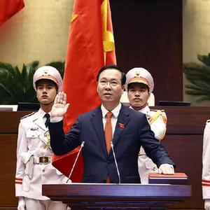 據越南國家電視臺2日報道,越南第十五屆國會(huì )第四次特別會(huì )議當天上午在首都河內召開(kāi),經(jīng)投票表決,越共中央政治局委員、中央書(shū)記處常務(wù)書(shū)記武文賞當選為越南國家主席,武文賞隨后宣誓就職。