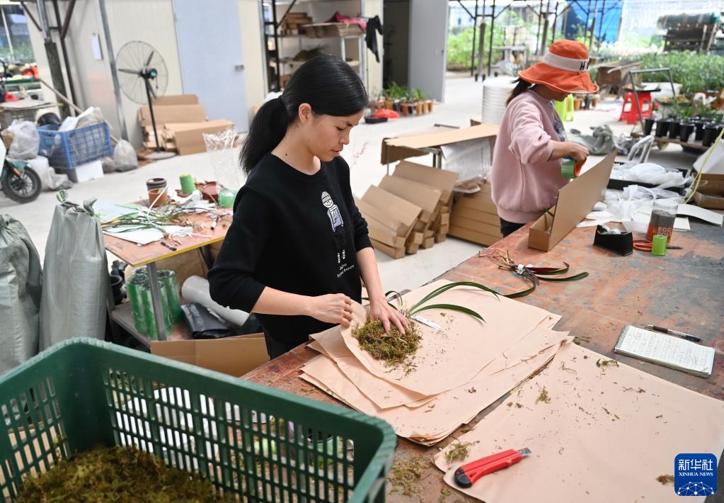 3月1日,在漳州南靖縣的“青心蘭園”,工作人員在打包蘭花準備發(fā)往各地。