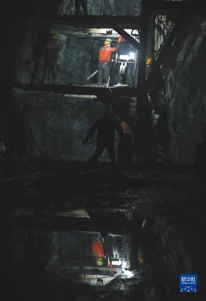 3月1日,在沈白高鐵遼寧段新賓隧道內,中鐵十九局施工人員在隧道內施工。