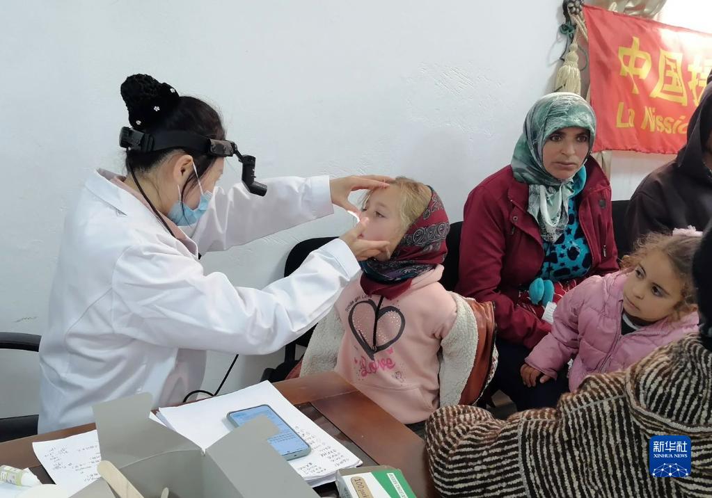1月19日,在摩洛哥舍夫沙萬(wàn),中國援摩醫療隊的耳鼻喉科醫生高藝玲為當地群眾義診。