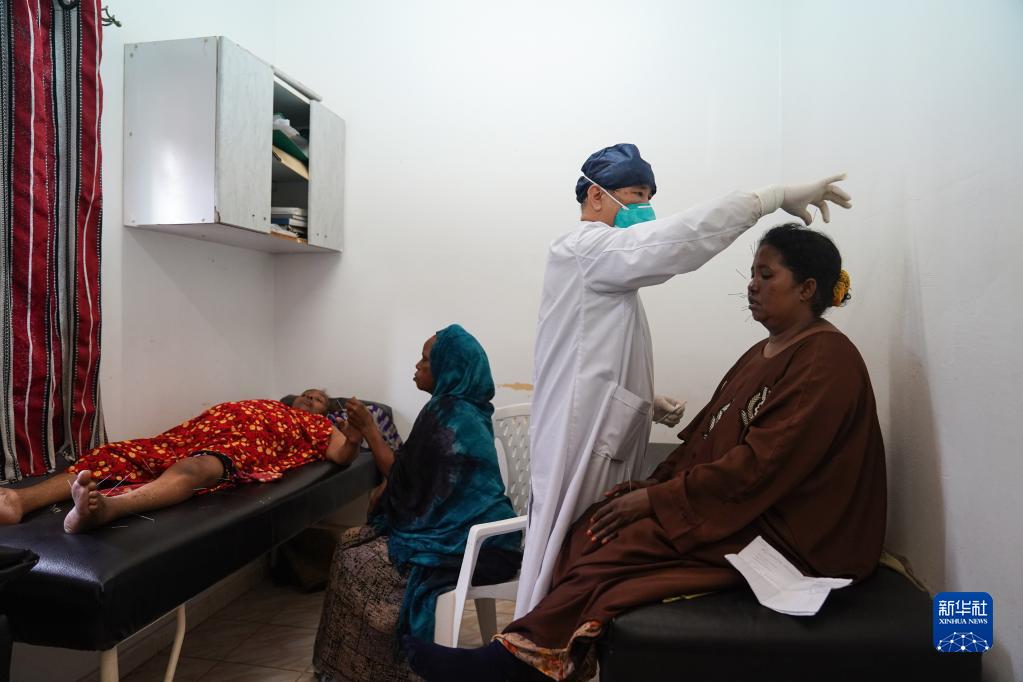 2月28日,在吉布提首都吉布提市貝爾蒂耶醫院,中國第21批援吉布提醫療隊醫生周乃忠為當地患者進(jìn)行針灸治療。