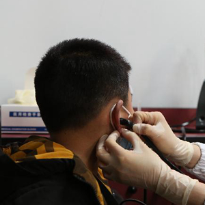 3月3日,復旦大學(xué)附屬兒科醫院醫生為兒童檢查聽(tīng)力。
