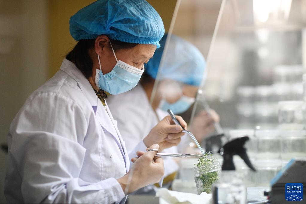 工作人員在寧夏西吉縣恒豐馬鈴薯種薯脫毒繁育中心進(jìn)行馬鈴薯脫毒苗切段繁育(3月2日攝)。