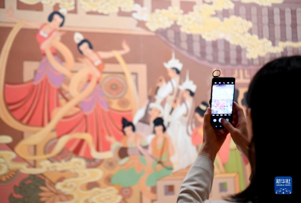 游客在洛陽(yáng)市應天門(mén)遺址博物館內參觀(guān)拍照(2月28日攝)。