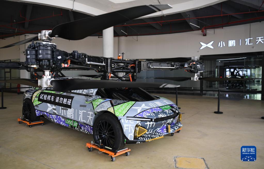 在廣州市番禺區小鵬匯天總部現場(chǎng)展示的飛行汽車(chē)試驗樣車(chē)(2月24日攝)。