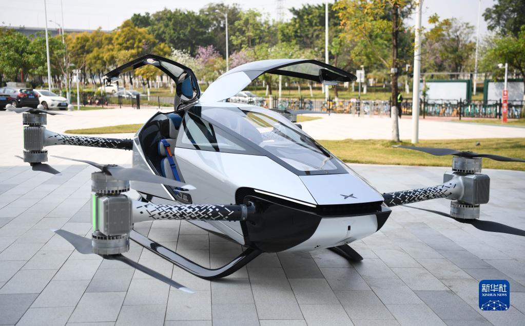 在廣州市番禺區小鵬匯天總部靜態(tài)展示的飛行汽車(chē)旅航者X2(2月24日攝)。
