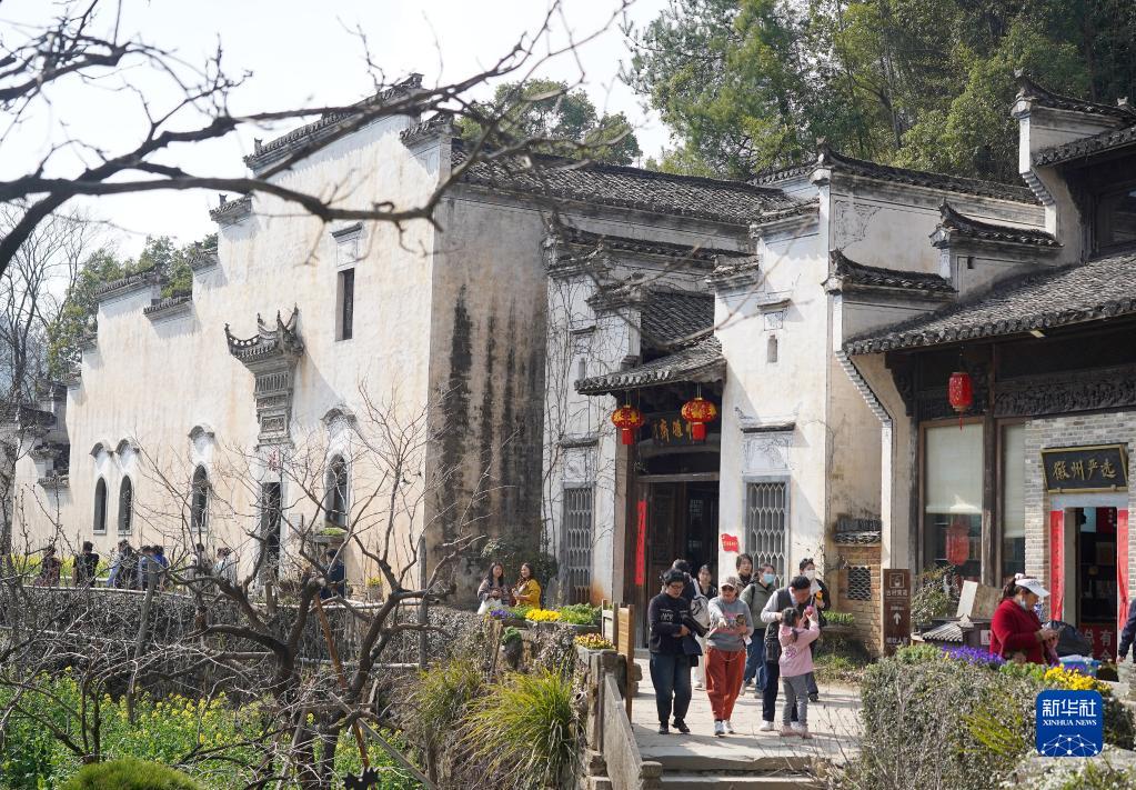 游客在江西省婺源縣篁嶺景區游覽(3月2日攝)。